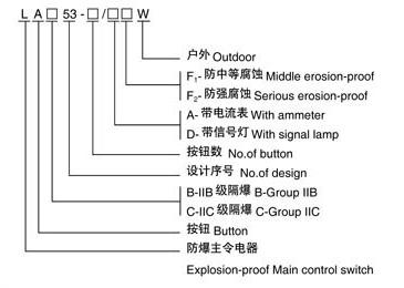 适用范围 1. 1区、2区危险场所; 2. II A、II B、II C类爆炸性气体环境; 3.户内、户外; 型号含义 产品特点 1.铝合金外壳压铸成型,表面喷塑。 2.内装隔爆型按钮和电流表。 3.电流表的按钮可监视设备运行状态。 4.钢管或电缆布线。